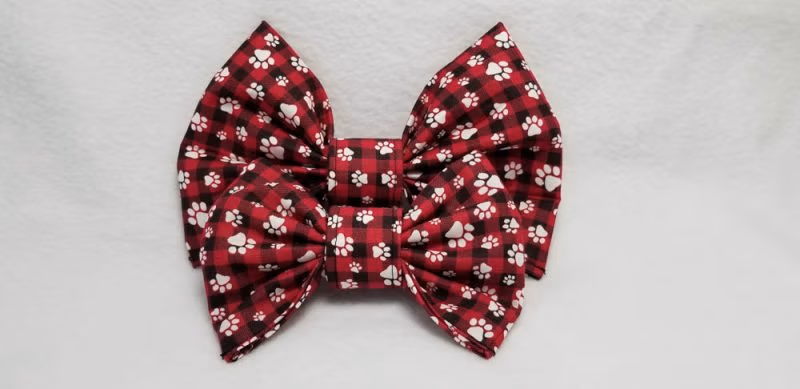 Adorable fashion Bow Tie Accessories that attach to your dog’s collar. Each bow tie is handmade from cotton fabric (unless otherwise noted), fusible interfacing and the bow has lightweight polyester quilting batting to help keep the bow’s shape.